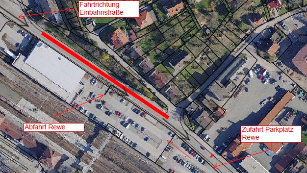 Die Zufahrt zum Rewe Markt ist von Richtung Odenwaldstraße bis zur Baustelle über den Schotterparkplatz möglich und wird entsprechend ausgeschildert.