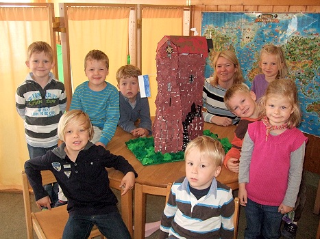Regenbogenkinder bauen Pulverturm nach (Foto: privat)(bro) (sch) Das neue Kindergartenjahr 2012/13 im evangelischen Kindergarten Regenbogen steht unter dem Motto: Meine Stadt - Eberbach.
