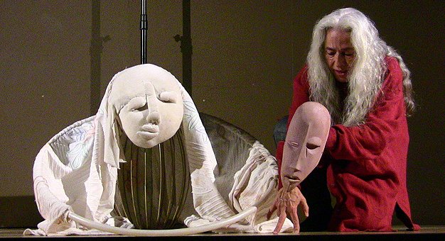 Mit der perfekten Bühnenbeleuchtung durch Reinhard Hofmann spielte Witte mit ihren selbst hergestellten ausdrucksstarken Masken - diese meist aus Ton, die Figur des Todes ist aus Stoff genäht - die einzelnen Szenen der Geschichte nach. Das eher karge Bühnenbild verstärkte das Geschehen auf der Bühne und ließ Platz für das Wahrnehmen der unterschiedlichen Stimmungen zwischen Hoffen und Bangen, zwischen Trauer und Freude. Witte verstand es hervorragend mit ihren Texten und ihrem Gesang den Gästen dieses Märchen in einer außergewöhnlichen Weise darzubieten.