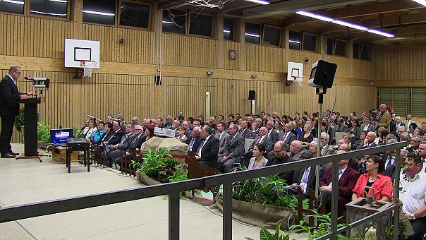 Drei Festtage für ein dreiviertel Jahrtausend Ortsgeschichte Bürgermeister Jan Frey bei seiner Begrüßung zum Festbankett. (Foto: Hubert Richter)Mehr Bilder (Klicken zum Vergrößern):