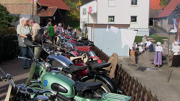 Das hervorragende Herbstwetter mit spätsommerlichen Temperaturen spielte den Schönbrunnern vor allem beim historischen Treiben in die Hände (unsere Bilder). Gestern und auch noch heute können die Besucher in den für den Fahrzeugverkehr gesperrten Straßen im Oberdorf einiges erleben. Die Häuser sind geschmückt, unter anderem mit über 100 Fahnen, im Bürgersaal des Rathauses gibt es eine Fotoausstellung, und an zahlreichen Stationen auf dem Festgeländes kann man in die frühere Lebenswelt der land- und forstwirtschaftlich geprägten Gegend eintauchen. Viele Vereine, Institutionen und Privatpersonen haben sich dafür in monatelangen Vorbereitungen ins Zeug gelegt. Gezeigt werden unter anderem historische Fahrzeuge, Produkte, Geräte und alte Handwerkskünste.