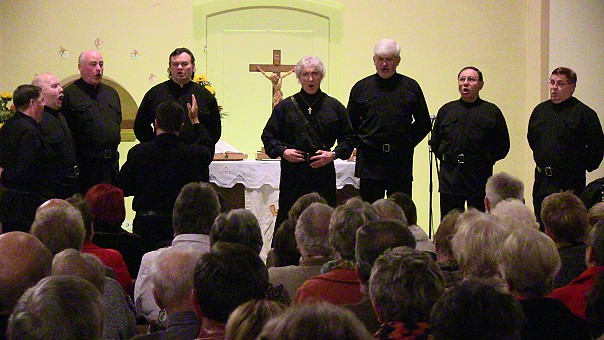 Drei Festtage für ein dreiviertel Jahrtausend Ortsgeschichte Jubiläumskonzert des Schwarzmeer-Kosaken-Chors mit Peter Orloff (Mitte) am Samstagabend in der ausverkauften Kirche. (Foto: Hubert Richter)Mehr Bilder (Klicken zum Vergrößern):