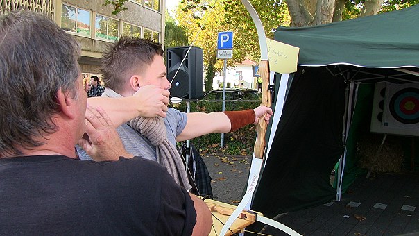 Traditionelles Herbstfest im Wetterglück - Kreativmarkt in der Stadthalle Bogenschützen auf dem Bahnhofsplatz. (Foto: Hubert Richter)Mehr Bilder (Klicken zum Vergrößern):