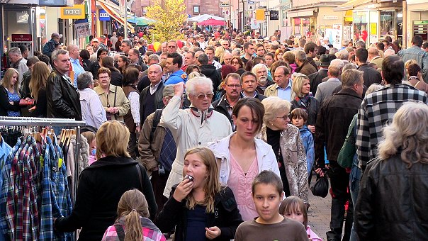 Eng ging es dann am heutigen Apfeltag in den Straßen und auf den (Park)Plätzen der Stadt zu. Die Verbindung von verkaufsoffenem Sonntag und buntem Straßenfest kam bei fast sommerlichem Wetter erneut bestens an und sorgte für einen Massenansturm. Um 12 Uhr eröffnete der Fanfarenzug das Fest, und Musik war auch am Nachmittag vielerorts zu hören, etwa von den "Gaiberger Musikanten", "Dileit", den "Riverside Gospel Singers", den "Rockefellers", "Blue Jeans" und "Sunny Side Up". Es gab Volkstanz, eine kleine Alpaka-Tierschau und jede Menge kulinarische Angebote mit und ohne Apfel. Bei der Polizei gastierte die Verkehrspuppenbühne, und im Hof stellten die Beamten neue Verkehrsmittel wie E-Bike und Segway vor. Auf dem Neuen Markt präsentierten sich erstmals Eberbacher Handwerksbetriebe. Die Einzelhandelsgeschäfte waren von 12.30 bis 17.30 Uhr geöffnet. Zudem kamen Flohmarktfans im evangelischen Gemeindehaus und auf dem REWE-Parkplatz auf ihre Kosten.