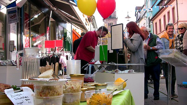 Eng ging es dann am heutigen Apfeltag in den Straßen und auf den (Park)Plätzen der Stadt zu. Die Verbindung von verkaufsoffenem Sonntag und buntem Straßenfest kam bei fast sommerlichem Wetter erneut bestens an und sorgte für einen Massenansturm. Um 12 Uhr eröffnete der Fanfarenzug das Fest, und Musik war auch am Nachmittag vielerorts zu hören, etwa von den "Gaiberger Musikanten", "Dileit", den "Riverside Gospel Singers", den "Rockefellers", "Blue Jeans" und "Sunny Side Up". Es gab Volkstanz, eine kleine Alpaka-Tierschau und jede Menge kulinarische Angebote mit und ohne Apfel. Bei der Polizei gastierte die Verkehrspuppenbühne, und im Hof stellten die Beamten neue Verkehrsmittel wie E-Bike und Segway vor. Auf dem Neuen Markt präsentierten sich erstmals Eberbacher Handwerksbetriebe. Die Einzelhandelsgeschäfte waren von 12.30 bis 17.30 Uhr geöffnet. Zudem kamen Flohmarktfans im evangelischen Gemeindehaus und auf dem REWE-Parkplatz auf ihre Kosten.