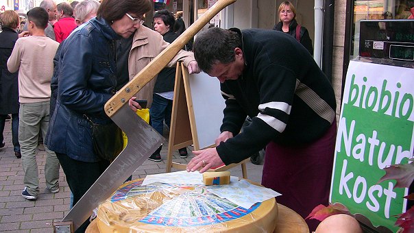 Eng ging es dann am heutigen Apfeltag in den Straßen und auf den (Park)Plätzen der Stadt zu. Die Verbindung von verkaufsoffenem Sonntag und buntem Straßenfest kam bei fast sommerlichem Wetter erneut bestens an und sorgte für einen Massenansturm. Um 12 Uhr eröffnete der Fanfarenzug das Fest, und Musik war auch am Nachmittag vielerorts zu hören, etwa von den "Gaiberger Musikanten", "Dileit", den "Riverside Gospel Singers", den "Rockefellers", "Blue Jeans" und "Sunny Side Up". Es gab Volkstanz, eine kleine Alpaka-Tierschau und jede Menge kulinarische Angebote mit und ohne Apfel. Bei der Polizei gastierte die Verkehrspuppenbühne, und im Hof stellten die Beamten neue Verkehrsmittel wie E-Bike und Segway vor. Auf dem Neuen Markt präsentierten sich erstmals Eberbacher Handwerksbetriebe. Die Einzelhandelsgeschäfte waren von 12.30 bis 17.30 Uhr geöffnet. Zudem kamen Flohmarktfans im evangelischen Gemeindehaus und auf dem REWE-Parkplatz auf ihre Kosten.