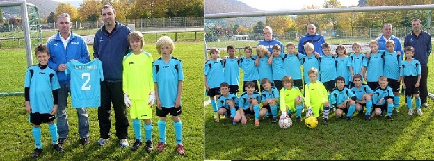E-Jugend des VfB Eberbach mit neuen Trikots zum Sieg (Fotos: privat)(bro) (jl) Am Samstag, 20. Oktober, spielten beide Mannschaften in Eberbach gegen die SpVgg Neckargemünd mit einem neuen Trikotsatz, den man beim ersten Joma-Cup gewonnen hatte. Die Übergabe der Trikots erfolgte durch einen Vertreter der Firma Joma vor den Anpfiff.