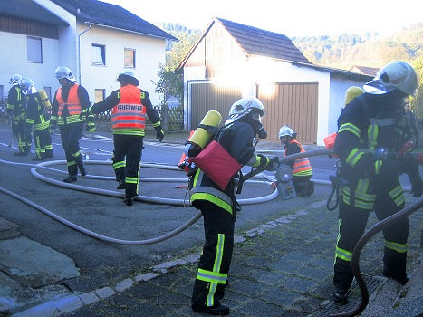 Dachstuhlbrand mit mehreren eingeschlossenen Personen (Foto: privat)(bro) (sens) Zur gemeinsamen Jahreshauptübung der freiwilligen Feuerwehr Sensbachtal trafen sich die Kameradinnen und Kameraden der drei Ortsteile am Sonntag, 21. Oktober, um 9 Uhr am Anwesen Gasse 2 im Ortsteil Unter-Sensbach.