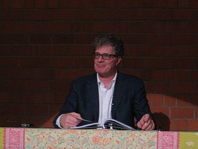 Roger Willemsen las aus seinem neuen Buch (Foto: Nicole Kolbe)(ko) Der Einladung von Familie Greif-Trussina von der Buchhandlung Greif folgte am Samstagabend der Fernsehmoderator und Buchautor Roger Willemsen nun schon zum zweiten Mal. Im Evangelischen Gemeindehaus am Leopoldsplatz stellte er vor über 200 interessierten Gästen sein neues Buch „Momentum“ vor.