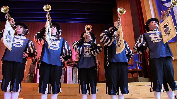 Bürgermeisterwahl war umsonst - Narren rufen Fürstentum Eberbach aus Die Bläser des Fanfarenzugs beim Fahnenappell für den Fürsten.(Foto: Hubert Richter)Mehr Bilder (Klicken zum Vergrößern):
