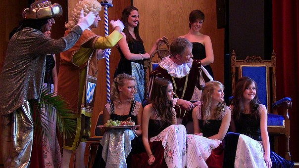 Der bestens aufgelegte Truchsess und Zeremonienmeister Ralph Brenneis machte "Fürst Didi" (Dirk Müller) inkognito im Publikum ausfindig. Schnell war er mit schmucker Robe und einem kompletten Hofstaat ausgestattet. Nach einer schmetternden Fanfare wurde zum "Bad'ner Lied" die fürstliche Fahne gehisst, und junge KGK-Gardemädchen gaben den Krönungstanz. Spektakulär lief an der Neckarfront der Stadthalle eine "Yacht" ein. Dieser entstieg eine liebreizende Schönheit (Kai Bissdorf), die von KGK-Präsident Udo Geilsdörfer zur Bühne getragen wurde. Um das neue Fürstentum mit Geld auszustatten, wurde kurzerhand ein Gelddrucker (Klaus Brenneis) angeheuert. Und weil das Blut des Fürsten nicht blau genug war, wurde mit einem Labor nachgeholfen. Wie sich dann aber herausstellte, hätten auch ein paar Flaschen Bier ausgereicht, um den neuen Regenten "blau" zu machen.