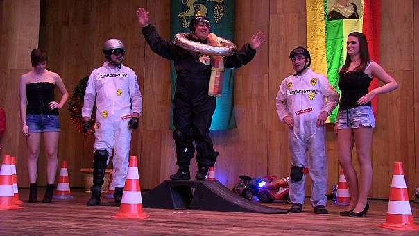 Eine Glanzrolle hatte Vizepräsident Markus Scheurich als Modezar Harold Blöödler, und auf einem "Formel-11"-Rundkurs auf der Bühne wurde ein Bobbycar-Rennen ausgetragen. Weil ein Spielcasino in einem Fürstentum nicht fehlen darf, wurde schließlich mit einem "Hütchenspiel ohne Grenzen" so richtig Geld gemacht. Die helle Freude über die nun angebrochenen goldenen Zeiten mündete in einem Abschlussfest, bei dem Günter Lipski an der Gitarre das "Eberbacher Lied" anstimmte.