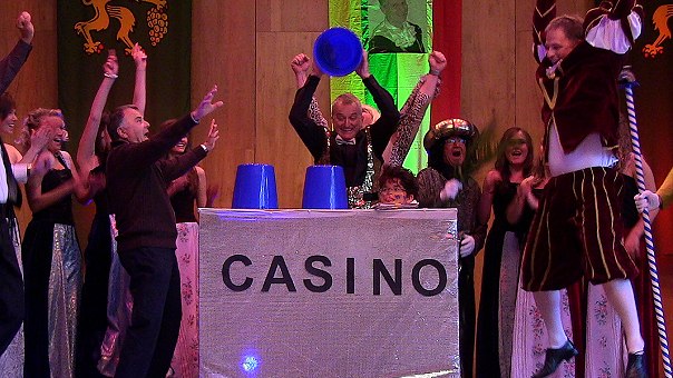 Bürgermeisterwahl war umsonst - Narren rufen Fürstentum Eberbach aus Das Hütchenspiel-Casino bringt Geld in die Kasse des Fürstentums. (Foto: Hubert Richter)Mehr Bilder (Klicken zum Vergrößern):