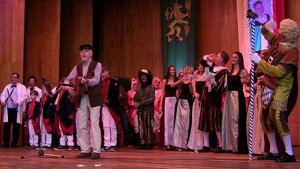 Bürgermeisterwahl war umsonst - Narren rufen Fürstentum Eberbach aus Abschlussfest mit dem "Eberbacher Lied". (Foto: Hubert Richter)Mehr Bilder (Klicken zum Vergrößern):
