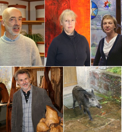 Belohnt wurden sie mit einem Einblick in die Arbeit in Ateliers und Werkstätten. Man hatte außerdem die Möglichkeit, mit den ausstellenden Künstlern und Handwerkern: Keramikermeister Alfred Schließler und Hanna Born-Schließler (Keramikwerkstatt Krösselbach), Marion Maass-Hartner (Malerei), Ulrike Nelles (Glaszone Nelles) und Franz Musiol (Holzskulpturen) ins Gespräch zu kommen.
