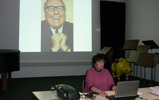 Veranstaltungsreihe startete mit Heinz Erhardt (Foto: Claudia Richter)(hr) Die Volkshochschule Eberbach-Neckargemünd (VHS) startete gestern mit einer humoristischen Veranstaltungsreihe. Am Abend stellte Kunsthistorikerin Yvonne Weber das Leben des bekannten Künstlers Heinz Erhardt vor.