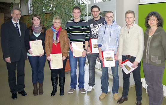 Einen Preis für besonders gute Leistungen erhielten Robin Herr (Notendurchschnitt 1,5), Svenja Konrad (1,5) und Natalie Koch (1,6). Ein Lob für gute Leistungen erhielten Mike Baumann (1,8) und Kathrin Münch (1,9).