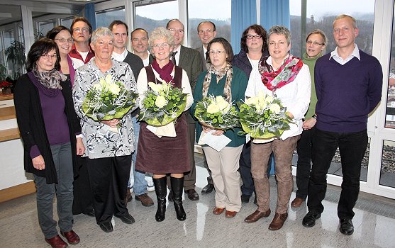 Fröhliche Jubilars- und Abschiedsrunde Tauschten in fröhlicher Runde Erinnerungen aus (v.l.n.r.): Elvira Rudischer-Weckesser, Melanie Reißfelder, Michael Spiegelberg, Anja Fahr, Wolfgang Bachert, Dr. med. Helmut Reinhard (Ärztlicher Direktor), Andrea Lederer, Ralf Geiger (Stellvertretender Betriebsleiter), Martin Hildenbrand, Elke Walter, Annette Grimm (kommissarische Leiterin der Röntgenabteilung), Ulrike Petra Göhrig, Marion Münch, Erwin Hügelschäfer. (Foto: GRN)(bro) (sm) Dass in einem Krankenhaus nicht nur Ärzte und Krankenschwestern arbeiten, wird in der GRN-Klinik Eberbach spätestens an dem Tag deutlich, an dem die jährliche interne Jubiläums- und Abschiedsfeier stattfindet - so auch in diesem Jahr, als Betriebsleiter Martin Hildenbrand Ende November zwei Jubilarinnen zu 40 sowie zwei Mitarbeiterinnen und einen Mitarbeiter zu 25 Jahren im öffentlichen Dienst beglückwünschte. Eine weitere Kollegin wurde in den Ruhestand verabschiedet.