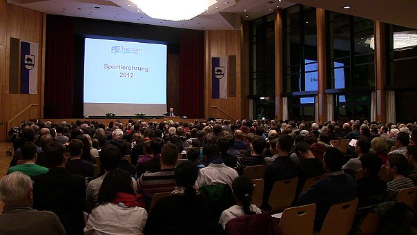 Zum Startbild (hr) In der nahezu voll besetzten Stadthalle ehrte die Stadt Eberbach heute Abend ihre erfolgreichen Sportlerinnen und Sportler.