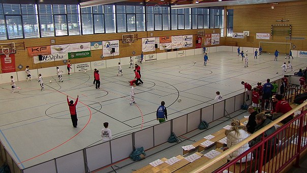 Nachwuchselite in der Hohenstaufenhalle - Offenbach siegt im Pfalzderby nach Neunmeterschießen In der Hohenstaufen-Sporthalle wurde eigens eine umlaufende Bande installiert. (Foto: Hubert Richter)Mehr Bilder (Klicken zum Vergrößern):