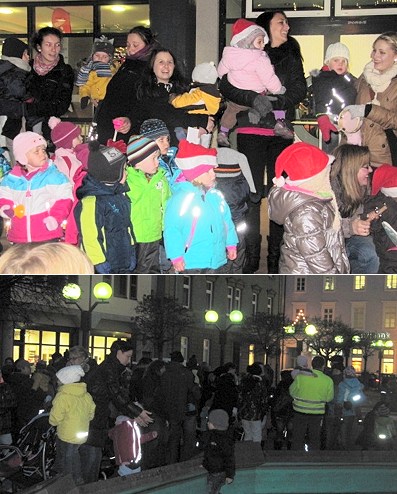Spatzenkinder sorgten für eine feierliche Umrahmung (Fotos: privat)(bro) Am Nikolaustag umrahmten die Kindern und Betreuer der Kinderkrippe Spatzennest stimmungsvoll das Öffnen des sechsten Adventskalenderfensters am Rathaus.