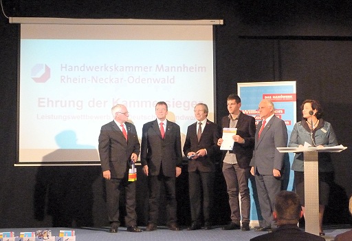 Jürgen Schmitt wurde von der Handwerkskammer Rhein-Neckar geehrt (Foto: privat)(bro) (aw) Wieder einmal bestätigte ein Kammersieger der Handwerkskammer Mannheim die Qualität der Ausbildung bei Dilo. Jürgen Schmitt aus Eberbach legte im Februar erfolgreich seine Gesellenprüfung ab und wurde am 12. Dezember in Mannheim von der Handwerkskammer Rhein-Neckar als Kammersieger geehrt.