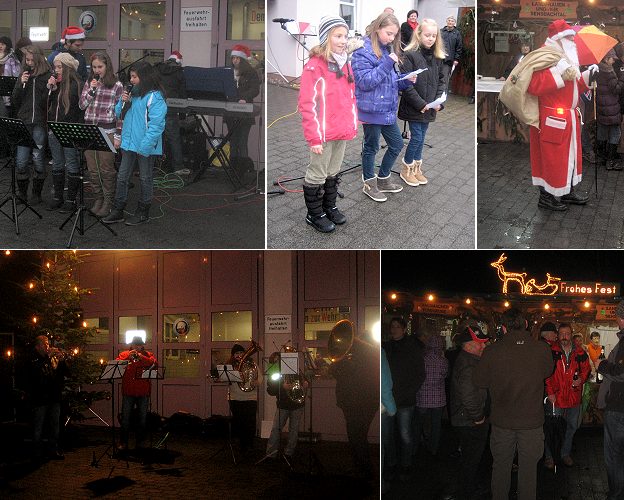 Leider war das Wetter nicht unbedingt weihnachtlich. Es regnete hin und wieder, aber das war für die Sensbacher und die zahlreichen auswärtigen Gäste kein Hinderungsgrund. Auch in diesem Jahr wurde durch einzelne Darbietungen ein interessantes Rahmenprogramm geboten. Den Auftakt machte der MGV Eintracht - Liederkranz Sensbachtal mit drei Liedvorträgen. Anschließend zeigte die Grundschule ihr Können. Begleitet von den Schülerinnen und Schülern der Musikschule Berg wurden weihnachtliche Lieder vorgetragen. Die Kinder des Kindergottesdienstes hatten für die Besucher dann Geschichten und Gedichte um die Weihnacht parat. Mit weiteren schönen Liedvorträgen des MGV wurde der Nachmittag dann fortgesetzt. Der Nikolaus hatte trotz der widrigen Verhältnisse sein Kommen zugesagt. Dieses Versprechen hielt er zur Freude der Kinder dann auch ein und beschenkte die kleinen Gäste. Danach spielten und sangen die Aktiven der Musikschule um Dieter Berg weihnachtliche Weisen. Wie in jedem Jahr rundete die Bläsergruppe des TV Gammelsbach den Nachmittag stimmungsvoll ab.