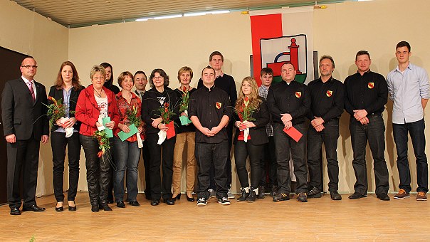 Jahresresümee mit Ehrungen und Musik Die geehrten Sportlerinnen und Sportler mit Bürgermeister Jan Frey (l.). (Foto: Hubert Richter)Mehr Bilder (Klicken zum Vergrößern):