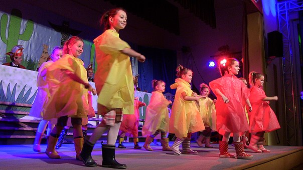 Fünf Tanzgruppen heizten die Stimmung im Saal mit Schau- und Gardetänzen an: Die kleinen "Eulenküken" hatten sich Regen und Sonnenschein zum Thema gemacht, die "Flames" präsentierten eine prickelnde Las-Vegas-Revue und die "Nachteulen" tanzten als Cowboys und Indianer ums Lagerfeuer. Klassische Gardetänze legten die "Eulenfunken" und die "Eulensterne" aufs Parkett. Als zackiges und akrobatisches Tanzmariechen hatte Manuela Vay ein bejubeltes Debut, und die Männertanzgruppe entführte die Gäste nach Mexico.