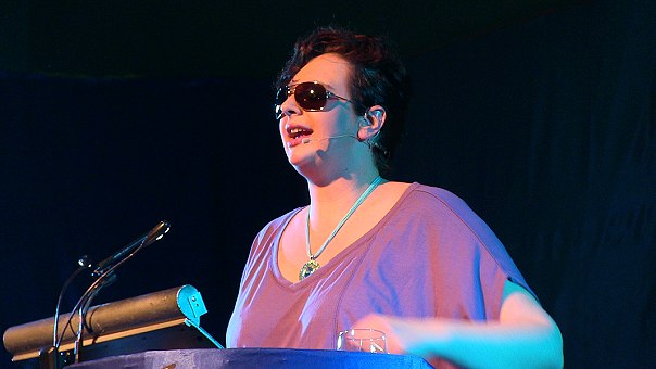 Club Eulenspiegel zieht närrische Register Sandra Dietz berichtete über ihre Erfahrungen in Castingshows. (Foto: Hubert Richter)Mehr Bilder (Klicken zum Vergrößern):