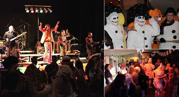 Mit knapp 500 Besuchern war der einzige große Faschingsball in Eberbach gestern bei weitem nicht ausverkauft. Der Förderverein der Freiwilligen Feuerwehr hatte das Event wieder bestens vorbereitet, mehrere Getränkestationen einschließlich der beliebten Bar unter der Bühne eingerichtet und mit "Harry Bo und die Gummibärchen" die bewährte Stimmungsband aus Südhessen engagiert. Vor der Bühne wurde eifrig getanzt, und an den Tischen gab es ausreichend Sitzplätze für die Erholung und Stärkung zwischendurch. So stand dem närrischen Feiern bis in die Morgenstunden nichts im Weg.
