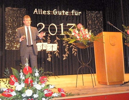 Bürgermeister Görig vermisst Unterstützung durch die Landesregierung (Foto: privat)(bro) (vo) Bereits seit mehreren Jahren veranstaltet die Stadt Beerfelden zu Beginn des neuen Jahres einen Empfang, bei dem auf das vergangene Jahr zurückgeschaut und ein Ausblick auf das neue Jahr gewagt wird. Traditionell begrüßte Bürgermeister Gottfried Görig in der „Alten Turnhalle“ die zahlreichen Bürgerinnen und Bürger, die trotz der widrigen Wetterumstände mit Eis und Schnee der Einladung gefolgt waren.