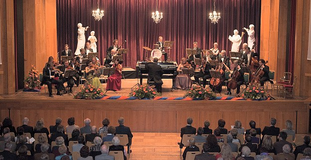 Auch in diesem Jahr begeisterte das Johann-Strauß-Orchester Kurpfalz unter der Leitung von Prof. Wolfram Koloseus seine Zuhörer mit bekannten Stücken aus Operetten von Johann Strauß über Jacques Offenbach bis Franz Lehar. Gekonnt schwungvoll und kurzweilig führte der Orchestergründer Frank Ringleb wieder durch das Programm. Der kurzfristig für den erkrankten Benedikt Nawrath eingesprungene Tenor Harry van der Plas überzeugte mit seinen stimmgewaltigen Darbietungen, während die Sopranistin Hana Lee u.a. mit der Arie der Olympia aus „Hoffmanns Erzählungen“ brillierte, in der sie eine Aufziehpuppe verkörperte und dieser gekonnt „Leben einhauchte“. Aber auch als Duett begeisterten die beiden Solisten mit Unterstützung des Orchesters das Publikum - z. B. mit dem Stück „Zwei Herzen im Dreivierteltakt“ von Robert Stolz. Mit der Klarinettenpolka „Lustige Gesellen“ oder dem Violoncello solo zu Beginn der „Polka francaise“ stellten auch die Musiker Bernd Ballreich, Martin Förster und Michael Steinmann ihr ausgezeichnetes Können unter Beweis.