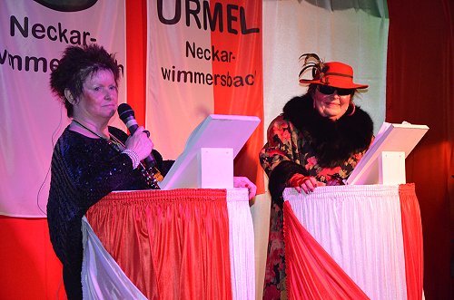 Nach der Pause berichteten Hans-Georg Hold und Bernhard „Lungo“ Walter wieder über allerlei Begebenheiten in Neckarwimmersbach aus dem vergangenen Jahr, und auch beim Austausch der beiden Freundinnen Emma (Inge Hold) und Paula (Renate Konradi) über den neuesten Tratsch blieb im Publikum kein Auge trocken.