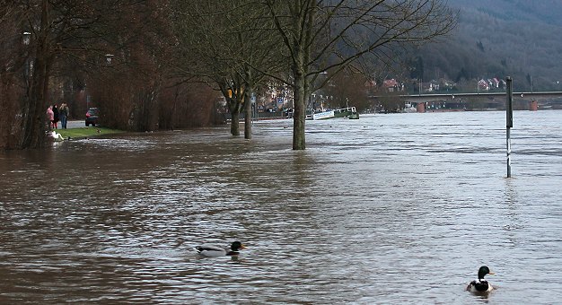 Der Neckar war damit nicht mehr weit von der Uferstraße B 37 entfernt. Deren Überflutung beginnt bei einem Pegelstand von 5,75 Metern. Laut Hochwasserprognose soll der Scheitelpunkt der heutigen Flutwelle gegen Mitternacht erreicht werden. Der Fluss ist heute im Lauf des Tages vor allem nach starken Niederschlägen am Oberlauf schnell angeschwollen. Am Morgen erst überflutete er den gestern Abend vorsorglich gesperrten Parkplatz am Neckarlauer. Am Pegel Rockenau wurde die Marke für ein "zweijähriges Hochwasser" mit 6,22 Metern am späten Nachmittag überschritten. Ab morgen wird zunächst wieder mit einem fallenden Wasserstand gerechnet.