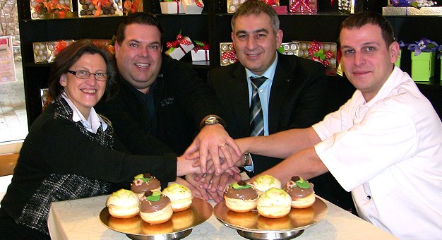 Dass diese Angelegenheit auch in der Backstube zu lösen ist, zeigte heute Birgit Valerius gemeinsam mit ihrem Sohn Florian Bäcker und präsentierte das Ergebnis: Man nehme unter anderem Teig, Sahne und Marzipan, kreiere zum einen den "Greenhorn-Berliner" mit Pistazien und zum anderen den "Old-Shatterhand-Berliner" mit Cowboy-Hut, lege beides auf einen Teller, und schon sind sich Greenhorn und Old Shatterhand sehr nahe. Für die passenden Rahmenbedingungen sollen jetzt noch Cowboys und Indianer sorgen, weshalb alle Cowgirls, Cowboys, Squaws und Indianer aufgerufen sind, am Rosenmontag, 11. Februar, in das Café Viktoria in der Friedrichstraße zu kommen, um sich zählen zu lassen. Denn an diesem Tag findet bei "Strohauer" auch die dritte Rosenmontagswette statt.