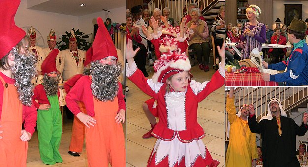 Lebensrad im närrischen Ausnahmezustand (Fotos: Claudia Richter)(cr) Im Eberbacher Senioren- und Pflegeheim "Lebensrad" wurde gestern Fastnacht gefeiert. Das Programm gestaltete die Karnevalgesellschaft Kuckuck (KGK). Bewohner des Heims unterstützten die Veranstaltung mit eigenen Beiträgen.