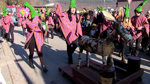 Bunter Gaudiwurm mit und ohne Hirschgeweih "Die Wilden aus dem Ittertal". (Foto: Hubert Richter)Mehr Bilder (Klicken zum Vergrößern):