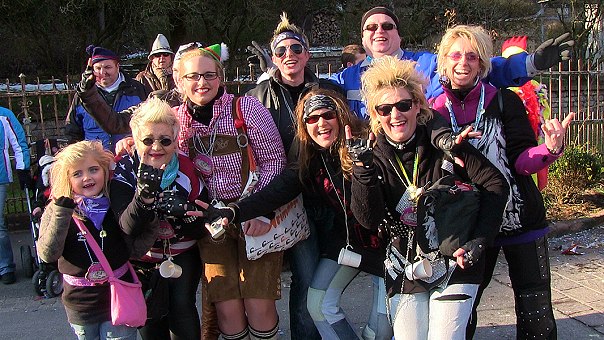 Bunter Gaudiwurm mit und ohne Hirschgeweih "Nesthocker" der KG Kuckuck Eberbach. (Foto: Hubert Richter)Mehr Bilder (Klicken zum Vergrößern):