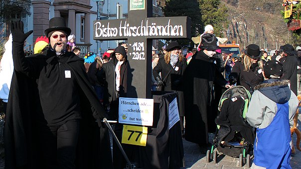 Bunter Gaudiwurm mit und ohne Hirschgeweih "La Familia" nimmt Abschied vom Bistro Hirschhörnchen. (Foto: Claudia Richter)Mehr Bilder (Klicken zum Vergrößern):