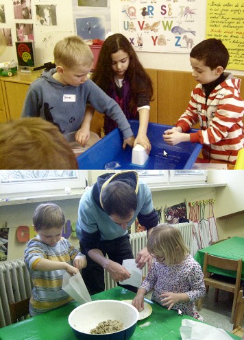 Den Winter mit allen Sinnen erleben Oben: Die Kinder lassen Eisberge schmelzen. Unten: Die Herstellung von Energiebällchen aus Haferflocken, Obst und Kokosraspeln. (Fotos: privat)(bro) (rup) Den Winter mit allen Sinnen erleben konnten die Kinder des Kindergartens St. Josef gemeinsam mit einer ersten Klasse der Steige- Grundschule.