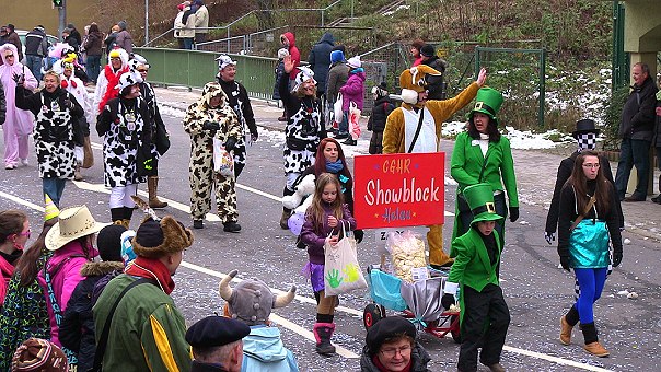 Die einzelnen Gruppen der gastgebenden KG Kuckuck führten nach dem Eberbacher Fanfarenzug die Reihe der Zugnummern an. Es folgten die "Wimmersbacher Ratze", die Landfrauen und eine Gruppe von Maiers Bauernstube aus Sensbachtal, der Frauenchor Igelsbach, eine Fußgruppe um Günter Lipski, die Faschingsfreunde aus Waldkatzenbach, der Club Eulenspiegel Rockenau, die Elwetrittsche-Jäger aus Dielbach, Gruppen aus Igelsbach, die Eberbacher "Rasselbande", die Neckargemünder Karnevalgesellschaft, die "Wilden aus dem Ittertal" mit großem Motivwagen, die KG Urmel, der Abiturjahrgang 2013 des HSG, die Fastnachtsfreunde Eberbach, die Hexen und mehrere Gruppen der Hirschhorner "Ritter". Mit dabei waren auch der VfB Eberbach, die Handballgesellschaft Eberbach, "Pleutersbach & Friends", die Karnevalfreunde Haidebow mit einem spektakulären Motivwagen, Walters Bauernhof und schließlich noch die Garden der KG Kuckuck mit dem Elferrat.