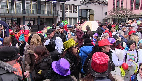 Alkoholmissbrauch und Körperverletzungen Das Feiern gestern auf dem Leopoldsplatz verlief überwiegend friedlich. (Foto: Hubert Richter)(cr) Einiges zu tun gab es für Polizei und DRK gestern beim Höhepunkt der Fastnachtszeit in Eberbach.