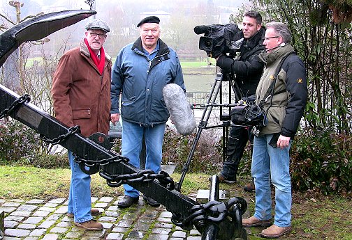 Heute Mittag stand der Eberbacher Eugen Emmig im Rampenlicht (unser Bild). Er ist hier als Schwimmmeister, Schiffer, Stadtführer und Nachtwächter bekannt, kennt die Gegend und die Gegebenheiten und ist somit genau die richtige Person, um den Menschen vor dem Bildschirm beispielsweise die Geschichte der Eberbacher Schifffahrt näher zu bringen. Termine hatten Klinghammer, Staubi und Reusch auch schon mit dem Spitzensportler und "Erfinder" des Neckarsteigs Timo Bracht. Noch bis Samstag ist das SWR-Team in Eberbach unterwegs, wird sich unter anderem mit Michael Teppner von der GELITA AG treffen, die Theodor-Frey-Schule besuchen, sich im Küferei-Museum informieren und im Club55 gemeinsam mit Kulturamtsleiter Tobias Soldner eine musikalische Kostprobe der jungen Sängerin Marina Galm anhören.