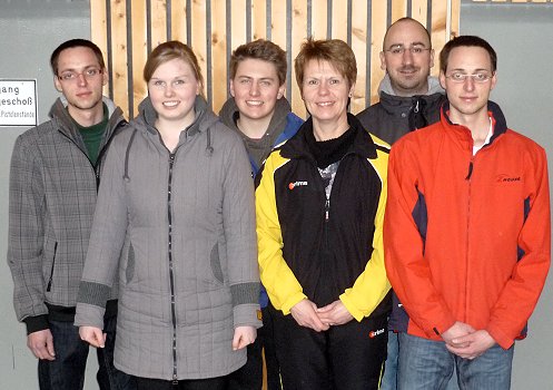 Kampf um den Einzug in die zweite Bundesliga V.l.: Friedrich Schölch, Nina Johe, Marvin Wäsch, Kerstin Liebsch, Patrick Joho, Stephan Schölch. (Foto: privat)(bro) (rj) Nachdem die erste Mannschaft der Eberbacher Luftgewehrschützen in der Endtabelle der Oberliga Baden den zweiten Platz belegt hatte, stand nun der Relegationswettkampf um den Aufstieg in die zweite Bundesliga an - der zweithöchsten Liga in Deutschland.