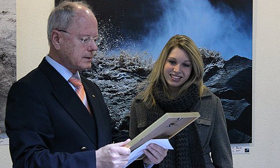 Herbert Hinterschitt, der Vorstandsvorsitzende der Bürgerstiftung, übergab den Kulturpreis heute am Rande einer Ausstellungseröffnung dreier Fotografen im Rathaus an die junge Künstlerin (unser Bild) und kündigte für dieses Jahr eine öffentliche Ausstellung ihrer Werke an.