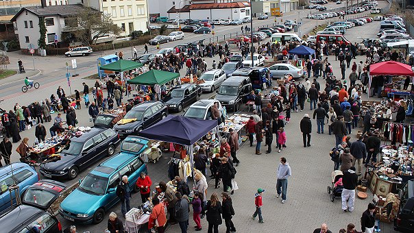 Bärlauchduft und Ostermarkt mit verkaufsoffenem Sonntag Flohmarkt an der Güterbahnhofstraße. (Foto: Hubert Richter)Mehr Bilder (Klicken zum Vergrößern):