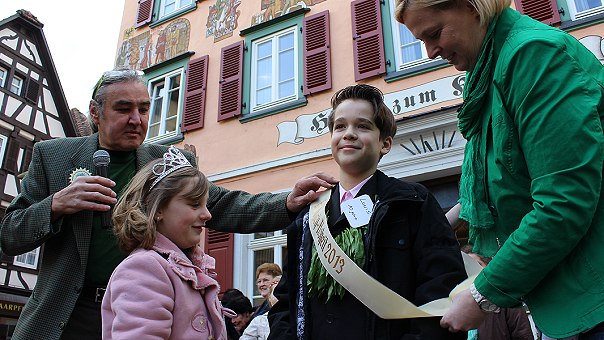 Weil an diesem Wochenende auch die "Eberbacher Bärlauchtage" starteten, wurde auf dem Alten Markt am Nachmittag die "Bärlauch-Hoheit 2013" gekürt. Der zehnjährige Louis Walter setzte sich im von Rolf Wieprecht moderierten Wettbewerb gegen seine sechs jungen Mitbewerberinnen durch und bekam von der Jury (Eva Reichert, Elena Range und Nadine Reinl) die meisten Punkte. Als Nachfolger von Chiara Salerno erhielt Louis den Titel und einen Gutschein für ein Essen für vier Personen. Zuvor hatte Bürgermeister Peter Reichert die Gäste zur Eröffnung der Bärlauchtage begrüßt. Bis 7. April gibt es wieder viel Bärlauch auf den Speisekarten und im Angebot der Eberbacher "Bärlauchaktiven".