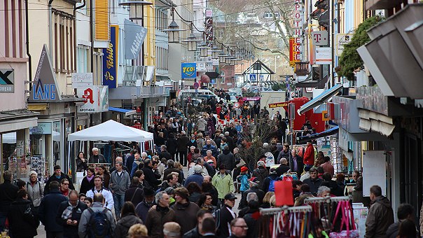 Bärlauchduft und Ostermarkt mit verkaufsoffenem Sonntag Viel Betrieb in der Bahnhofstraße am verkaufsoffenen Sonntagnachmittag. (Foto: Hubert Richter)Mehr Bilder (Klicken zum Vergrößern):