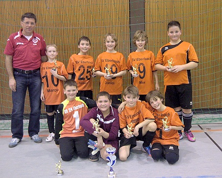 Nach der Vorrunde war das E2-Team mit einem Remis und zwei Niederlagen bereits ausgeschieden. Das E1-Team konnte in der Vorrunde ebenfalls nicht überzeugen. Zunächst unterlag man im Lokalderby dem VfB Eberbach 1 knapp mit 1:0, danach spielte man 0:0 gegen den Friedrichshaller SV 2 sowie 1:1 gegen den SV Sinsheim-Rohrbach und konnte nur als Gruppendritter in die Zwischenrunde einziehen. Erneut ging es gegen den SV Sinsheim-Rohrbach, der mit 1:0 besiegt wurde. Das nächste Spiel gegen den VfB Rauenberg wurde mit 2:0 verloren, bevor mit einem 1:0-Sieg gegen den Friedrichshaller SV 1 der Gruppensieg und Finaleinzug gelungen war. Erneut kam es zum Lokalderby gegen den VfB Eberbach 1, der nach Siegen gegen die SpVgg Ketsch, den VfB Eberbach 2 und die SG Kirchhardt ebenfalls das Finale erreichte. Die E1 des SVE zeigte ihr bestes Match und konnte trotz der spielerischen Vorteile des VfB mit Kampfgeist und Einsatzwillen die Partie ausgeglichen gestalten. Nachdem man eine Großchance vergeben hatte, geriet man in Rückstand, doch durch ein kurioses Eigentor des VfB stand es kurz danach 1:1-Unentschieden. Mit diesem Ergebnis endete das spannende Finale, sodass die Entscheidung im Neunmeterschießen fallen musste. Die SVE-Spieler hatten die besseren Nerven. Sie trafen viermal, während der VfB nur dreimal traf, und der umjubelte 5:4-Sieg war perfekt.